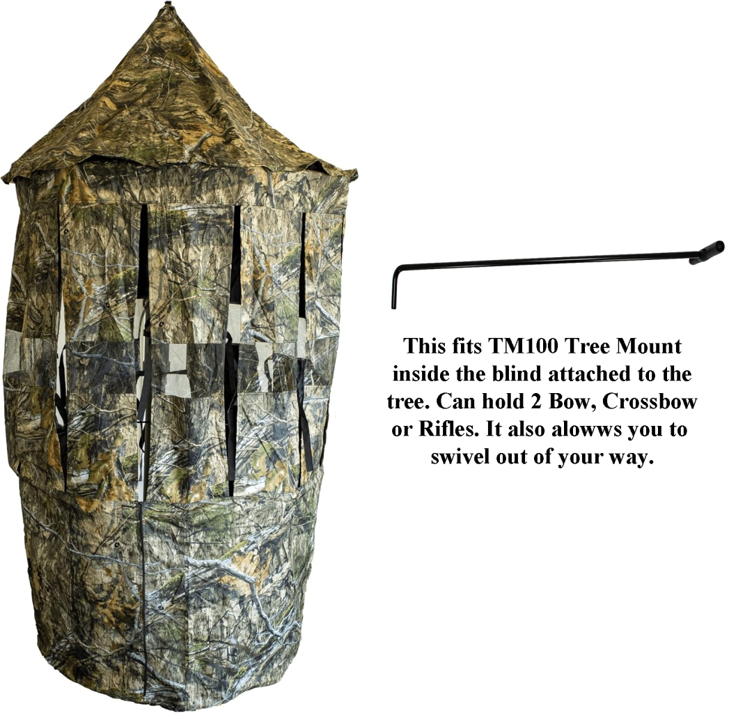 Add amazing coverage to your existing tree stand with the NEW 2025 BowMaster+ Hunting Blind with TM100. The BowMaster+ blind is an innovative way to get that shooting house effect without all the expense and hassle. It has been engineered to be lightweight and collapsible - thus making it transportable to virtually anywhere you can imagine. With the Tree Mount (TM100) you can be set up and hunting in just a few minutes. Inside the blind, you'll have more confidence knowing the BowMaster+ has you concealed. You can be hands-free to rattle in the Big Bucks using our Bow Hanger (BH100 (sold separately)) to hang your bow. And when the opportunity presents itself, there is plenty of room to stand and get a full draw inside the BowMaster+.